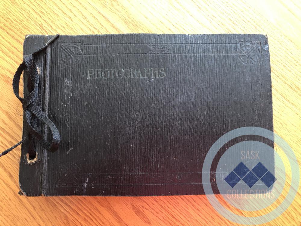 Black photograph album bound on the left side with a black lace