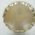 Silver tray with raised edge and wavy-curved detailing on the rim. Engraved in capital lettering on the middle of the platter, "Presented to JGD at the opening of the nuclear reactor McMaster University April 10, 1959." Name and University name in gothic curved text, other text straight. University crest engraved above text. Crest has eagle within the shield, with open book above and a maple leaf on either side, a crown, and curved motto enclosed above. Marks/Labels